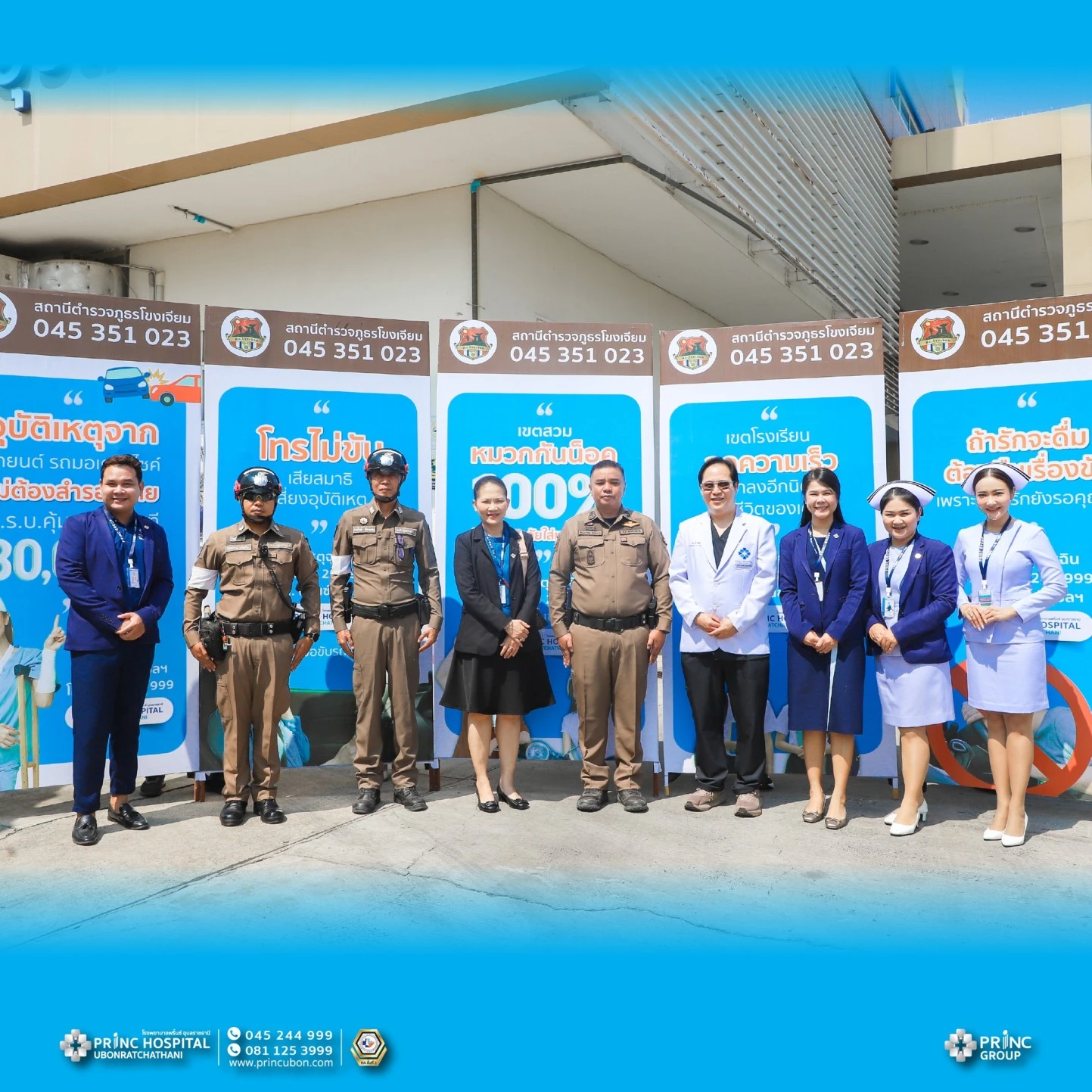 โรงพยาบาลพริ้นซ์ อุบลราชธานี มอบป้ายรณรงค์ประชาสัมพันธ์โครงการป้องกันและลดอุบัติเหตุทางถนน เพื่อสนับสนุนภารกิจของสถานีตำรวจภูธรเมืองอุบลราชธานี ในช่วงเทศกาลสงกรานต์ ประจำปี 2569