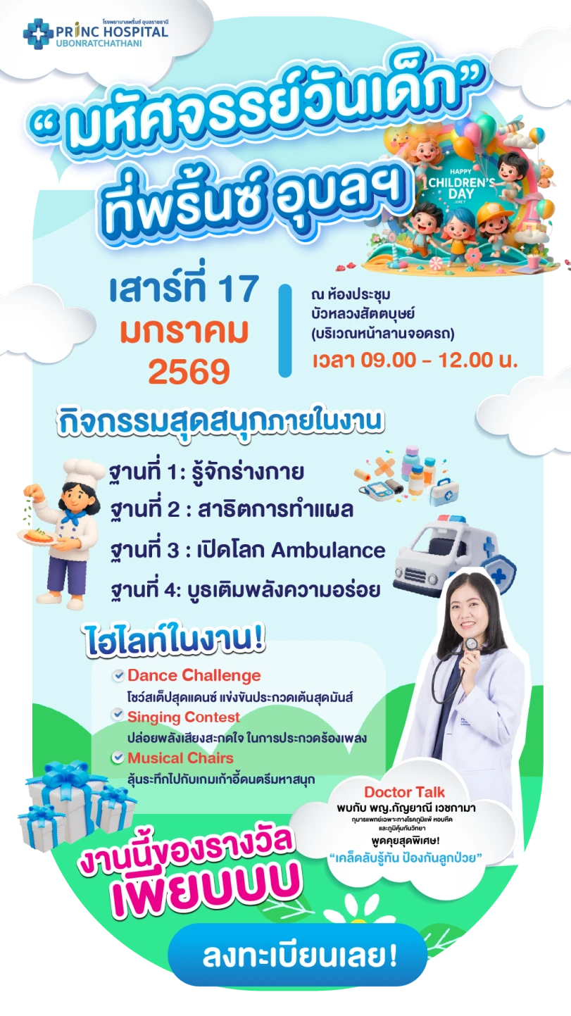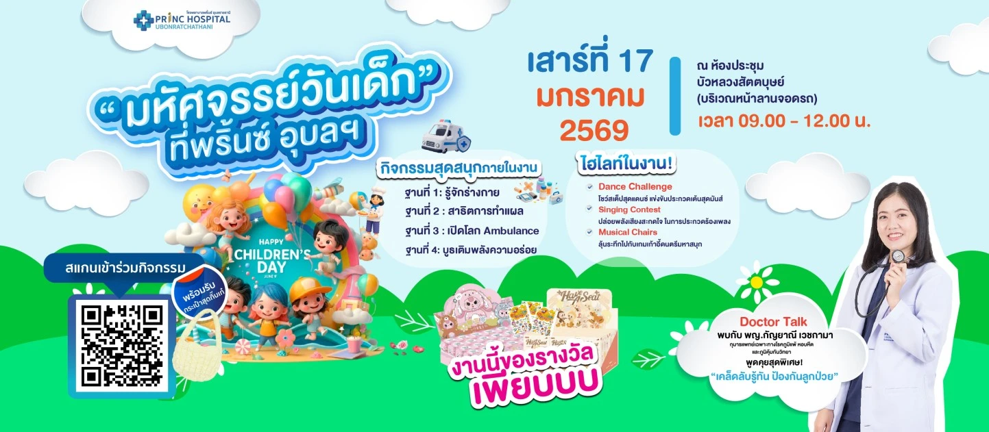 โรงพยาบาลพริ้นซ์ อุบลราชธานี จัดกิจกรรม “PRINC GROUP FAIR ตลาดนัดเพื่อคนรักสุขภาพ” วันที่ 24 กรกฎาคม 2568 เวลา 09.00 - 12.00 น. ณ ห้องประชุมดอกบัววิคตอเรีย โรงพยาบาลพริ้นซ์ อุบลราชธานี ภายในงานจัดเต็มด้วยบริการตรวจสุขภาพราคาพิเศษ เช่น แพ็กเกจตรวจสุขภาพเริ่มต้นเพียง 990 บาท และวัคซีนราคาพิเศษเริ่มต้นเพียง 690 บาท พร้อมรับของพรีเมียมทันทีเมื่อซื้อแพ็กเกจภายในงาน