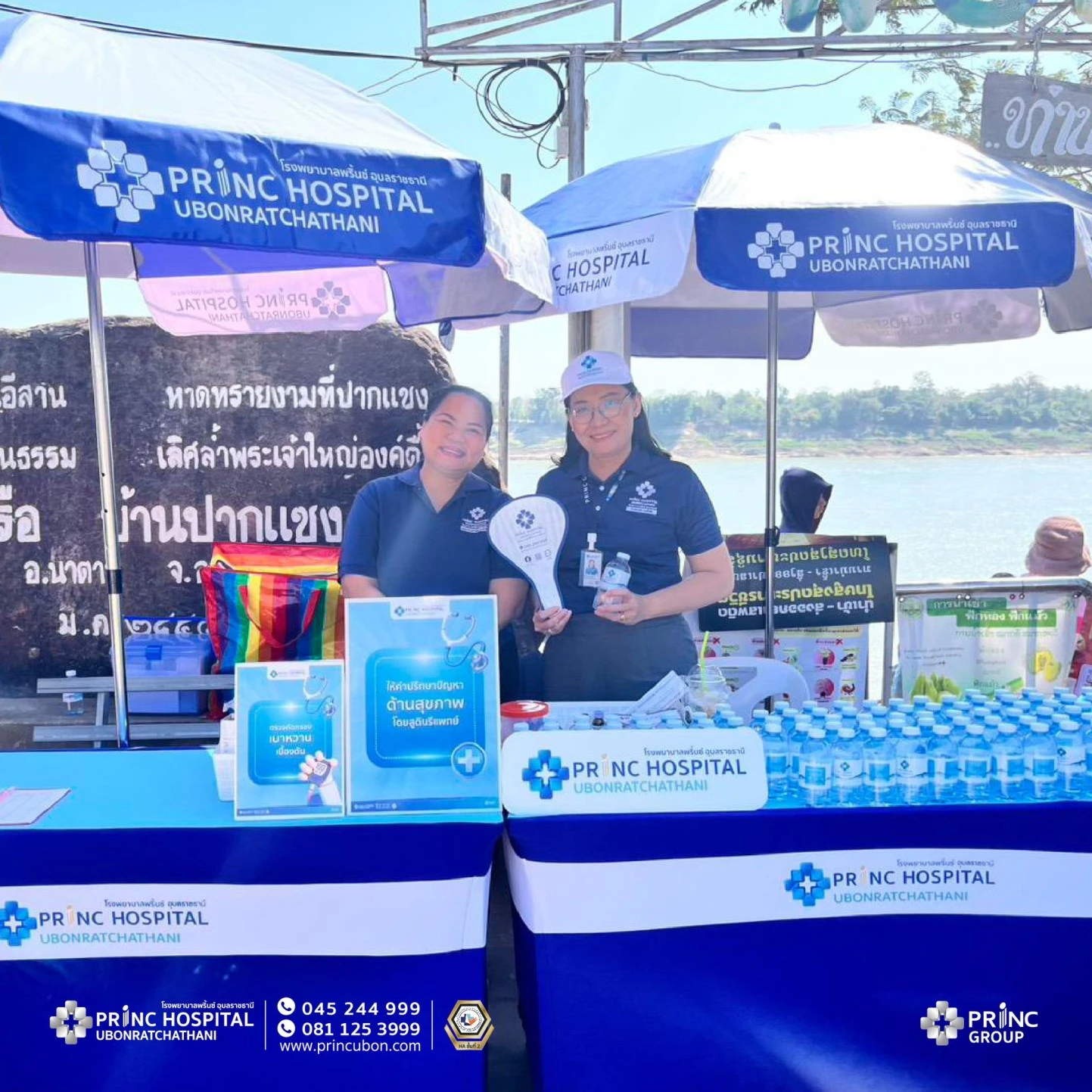 โรงพยาบาลพริ้นซ์ อุบลราชธานี ร่วมเป็นส่วนหนึ่งในการสนับสนุนและส่งเสริมสุขภาพแก่ประชาชน โดยจัดกิจกรรมแจกน้ำดื่ม พร้อมให้บริการตรวจวัดความดันโลหิต และเจาะตรวจระดับน้ำตาลปลายนิ้ว ณ จุดผ่านแดนถาวรบ้านปากแซง ในงานนมัสการพระเจ้าใหญ่องค์ตื้อ งานประจำปีวัดปากแซง ที่จัดขึ้นระหว่างวันที่ 25 มกราคม – 2 กุมภาพันธ์ 2569
