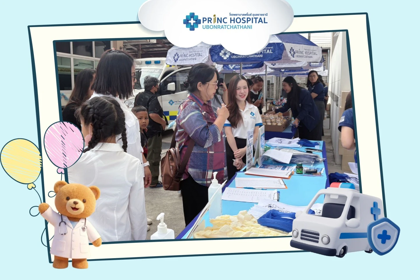 ภายในงานมีกิจกรรมหลากหลาย อาทิ บูธร่างกายของฉัน เรียนรู้อวัยวะในร่างกาย, บูธทำแผล ฝึกทักษะการปฐมพยาบาลเบื้องต้น, บูธสอน CPR เพื่อปลูกฝังความรู้ด้านการช่วยชีวิต, บูธสำรวจรถแอมบูแลนซ์ เปิดประสบการณ์เรียนรู้การทำงานของระบบการแพทย์ฉุกเฉินอย่างใกล้ชิด รวมถึงกิจกรรมแจกของรางวัลมากมายตลอดทั้งงาน