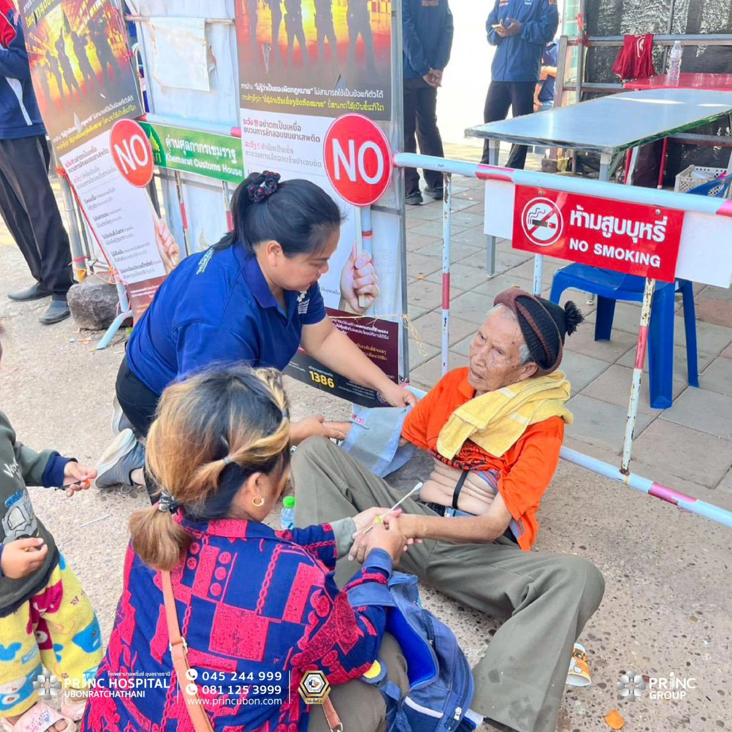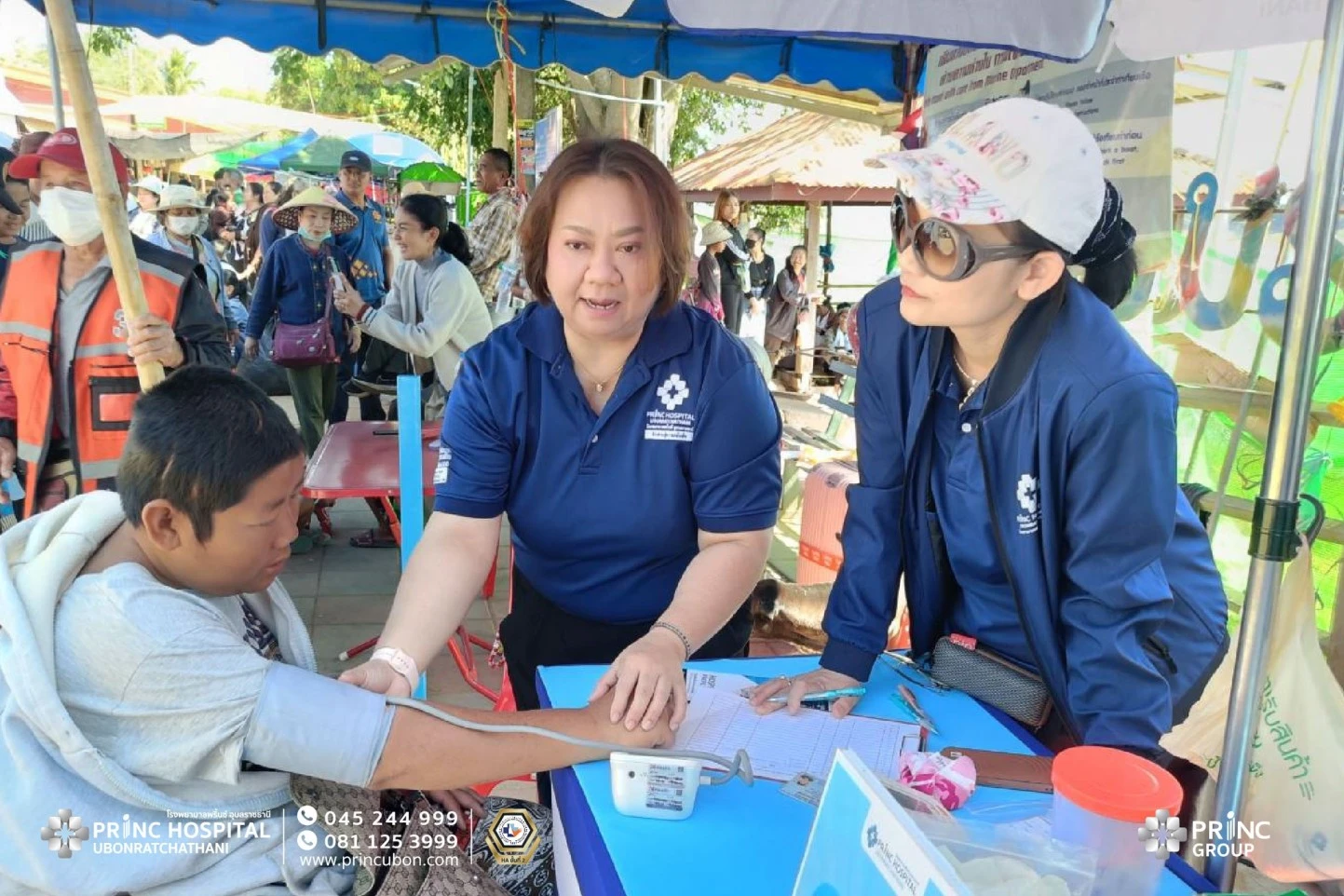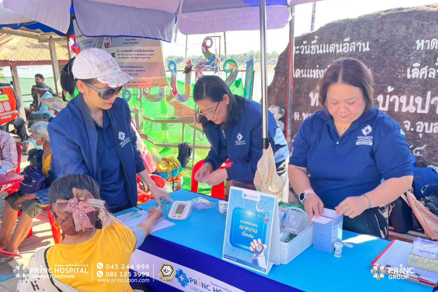 โรงพยาบาลพริ้นซ์ อุบลราชธานี ร่วมเป็นส่วนหนึ่งในการสนับสนุนและส่งเสริมสุขภาพแก่ประชาชน ณ จุดผ่านแดนถาวรบ้านปากแซง ในงานนมัสการพระเจ้าใหญ่องค์ตื้อ งานประจำปีวัดปากแซง
